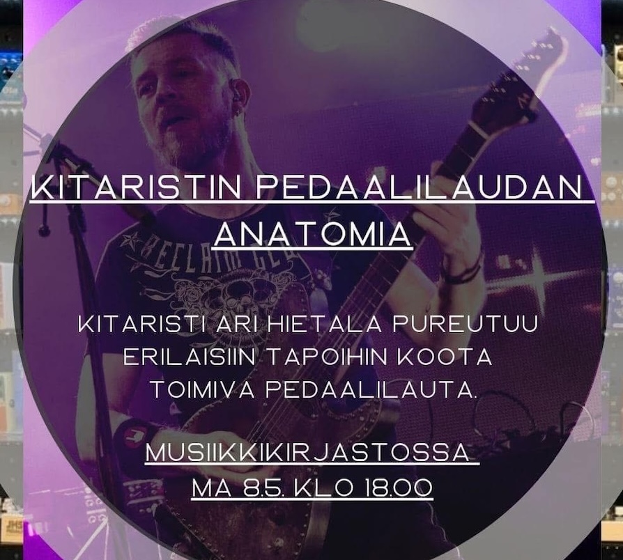 Kirjoittaja on Rovaniemen kaupunginkirjaston kirjastovirkailija, kitaristi, pedaalientusiasti ja osa-aikainen muusikko. Kuvien pedaalilaudat ovat kirjoittajan itselleen rakentamia.