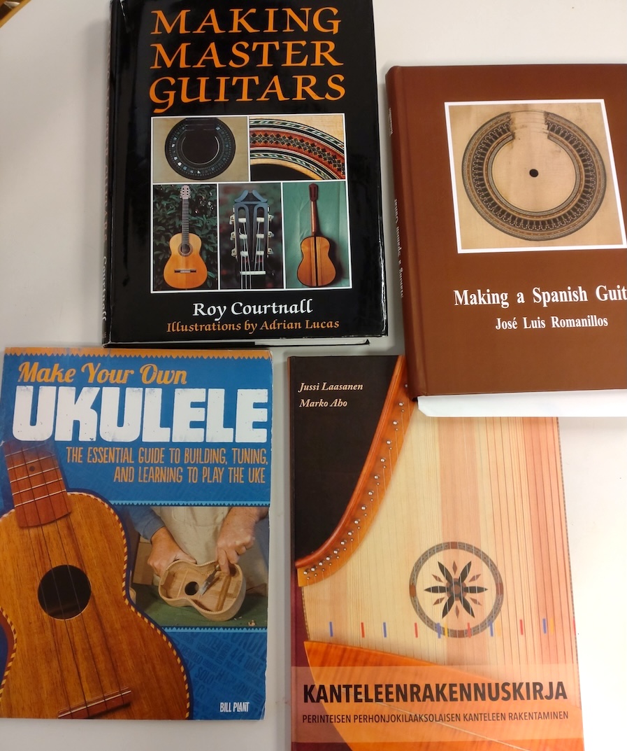 Joka tapauksessa olen koonnut kirjastoomme päivätyössäni vaatimattoman soitinrakennusoppaiden kokoelman avittamaan kurssilaisten ja muiden paikallisten rakentelijoiden omaehtoista perehtymistä soitinrakennuksen saloihin. Piki-kirjastoissa soitinrakennusoppaita on saatavilla edelleen laajempi kattaus. Ovatko oppaat kehittyneet, vai ovatko klassikot edelleenkin ylittämättömiä? Suoritan seuraavassa katsauksen muutamaan valitsemaani soitinrakennusoppaaseen, ja teen samalla yleisempiä huomioita oppaiden maailmasta.